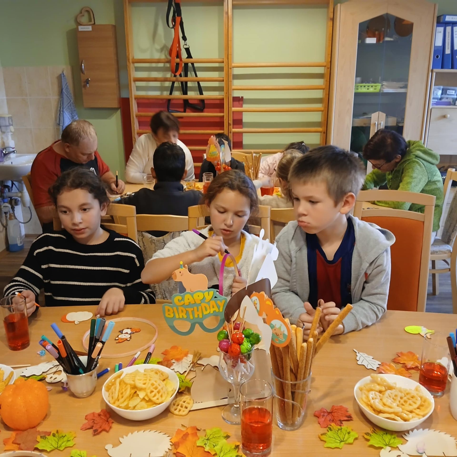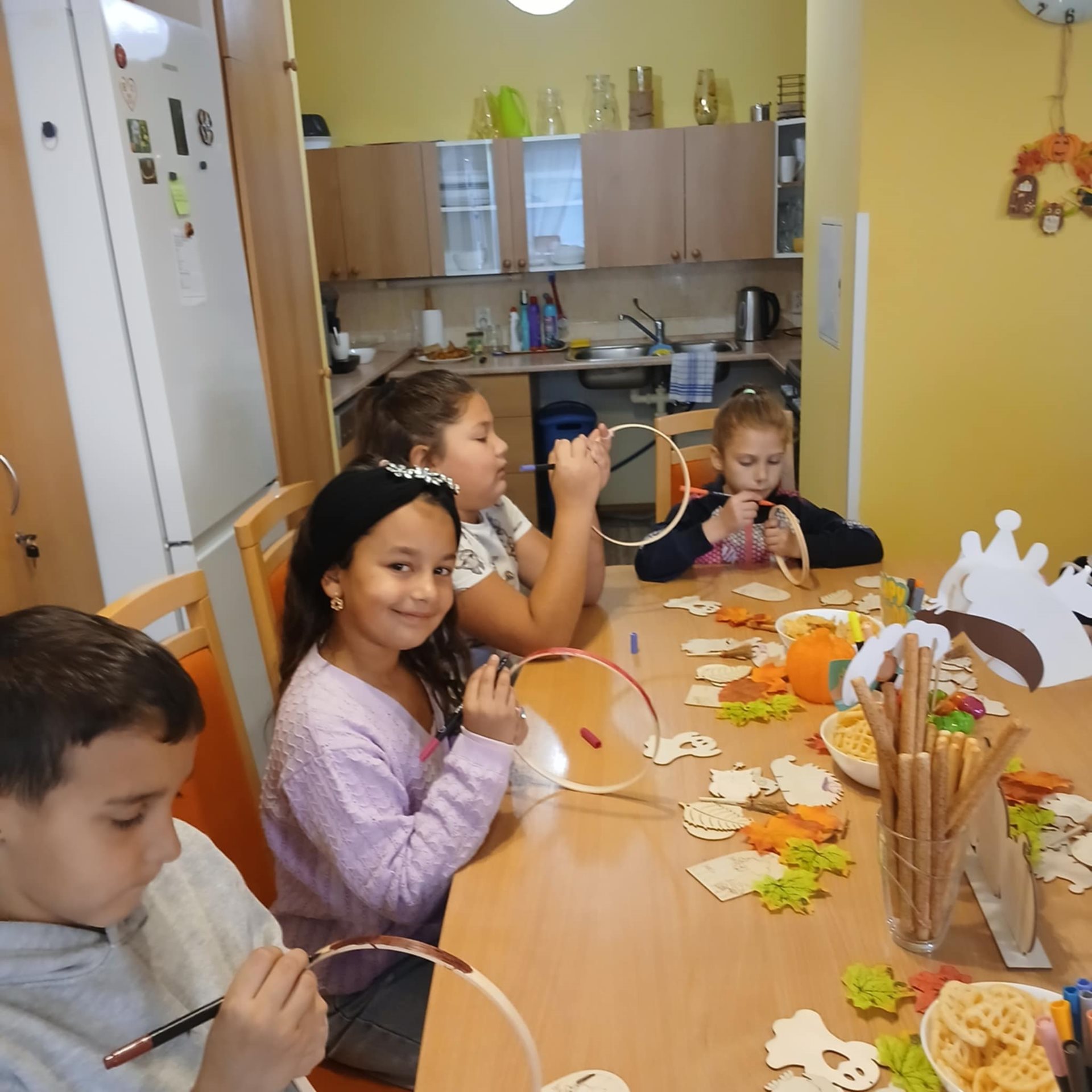 Podzimní atmosféra se stala inspirací pro výrobu barevných dekorací, které ozdobí školní i domácí prostory. Děti si s nadšením vyzkoušely různé výtvarné techniky a zároveň se dozvěděly více o tom, co znamená sociální služba Sagapo – že název vyjadřuje „Mám tě rád“ a že zde žijí lidé s mentálním a tělesným postižením v bezpečném a podporujícím prostředí.